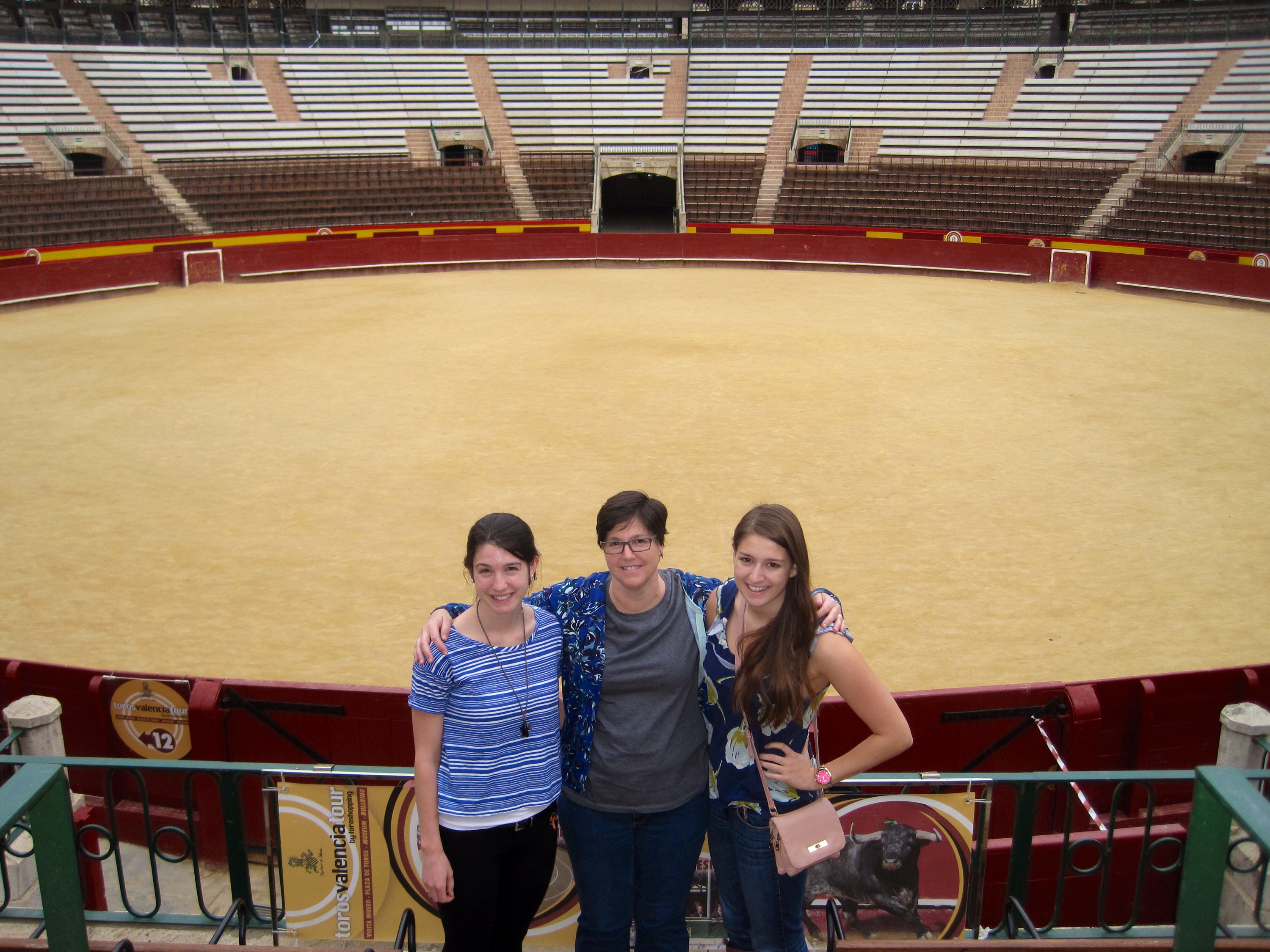 After the museum we went into the stadium where the bull fights still occur in Valencia today. Although the stadium looks quite big on the outside, it actually was not that big on the inside. We were able to go out to the center of the arena and do some good acting.