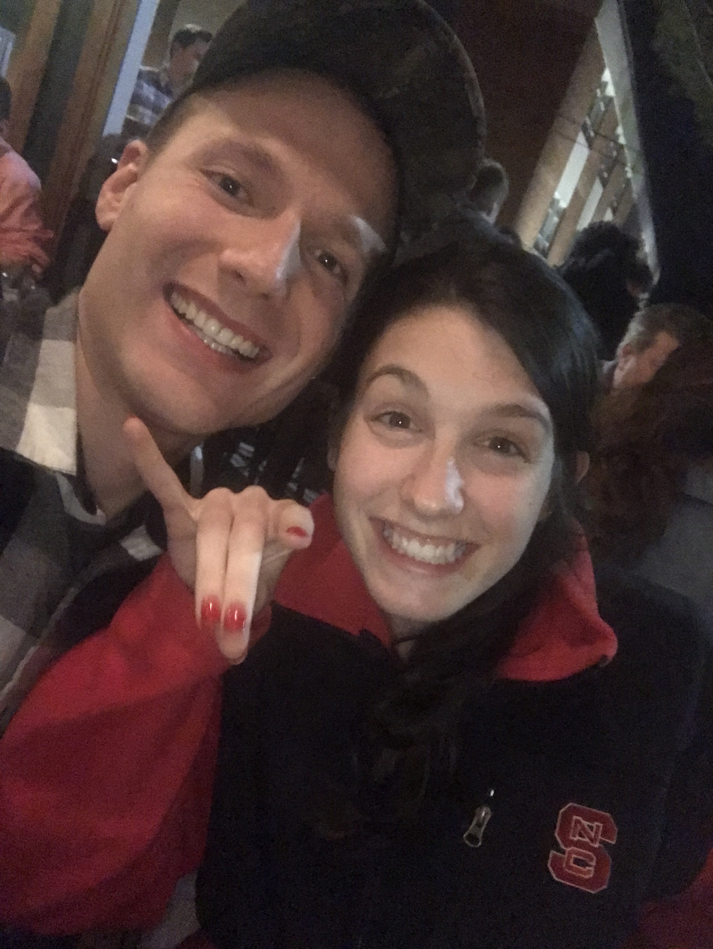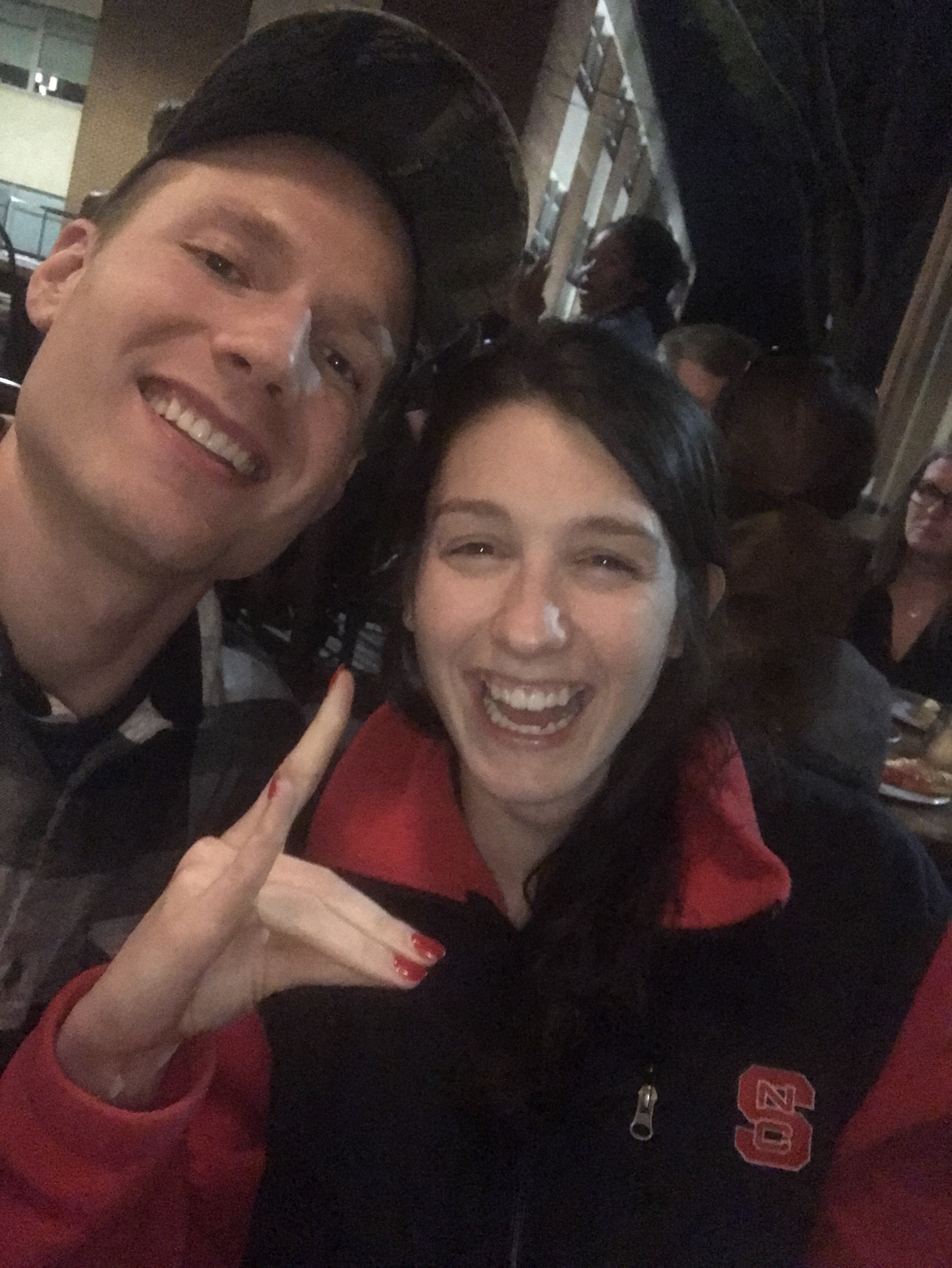 While we were waiting I learned how to make the Wolf Pack sign (the NC State mascot). Let me tell you, that it is not as easy as you would think.