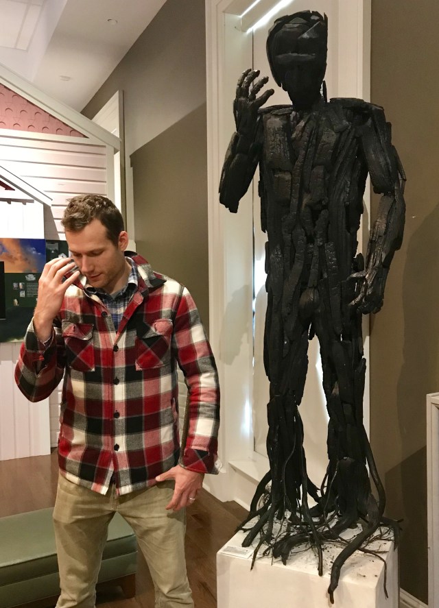One resident uses lumber damaged by Katrina to create statues.