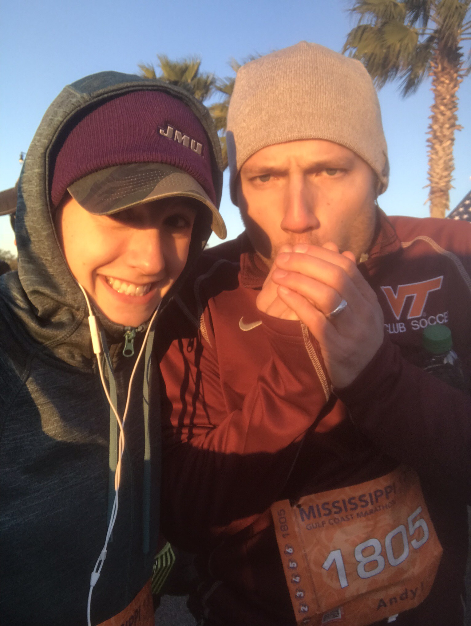 Flashback: Remember how I said it was really really cold in Biloxi? Well, it was still cold on the Sunday morning of our race. 33 degrees cold to be exact.
