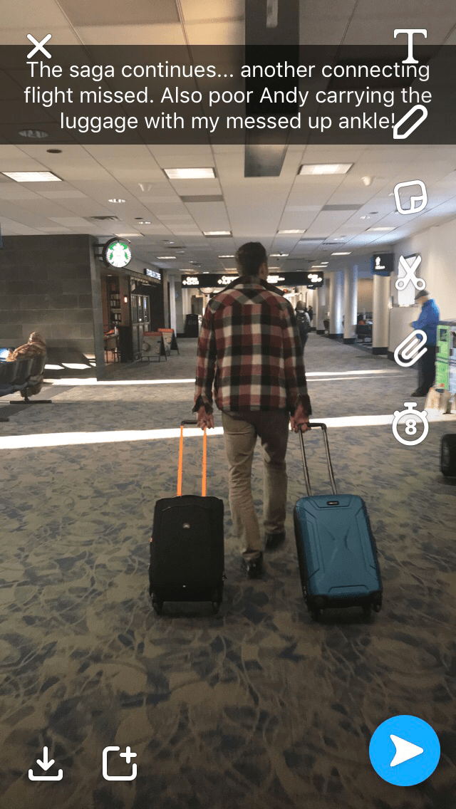 Anyways, in the midst of all of this, I sprained my ankle while trying to run to security to get Andy before the gate shut. I’m legit walking around the airport with this make-shift bandage holding some ice we had to beg Arby’s to give us. Super classy.