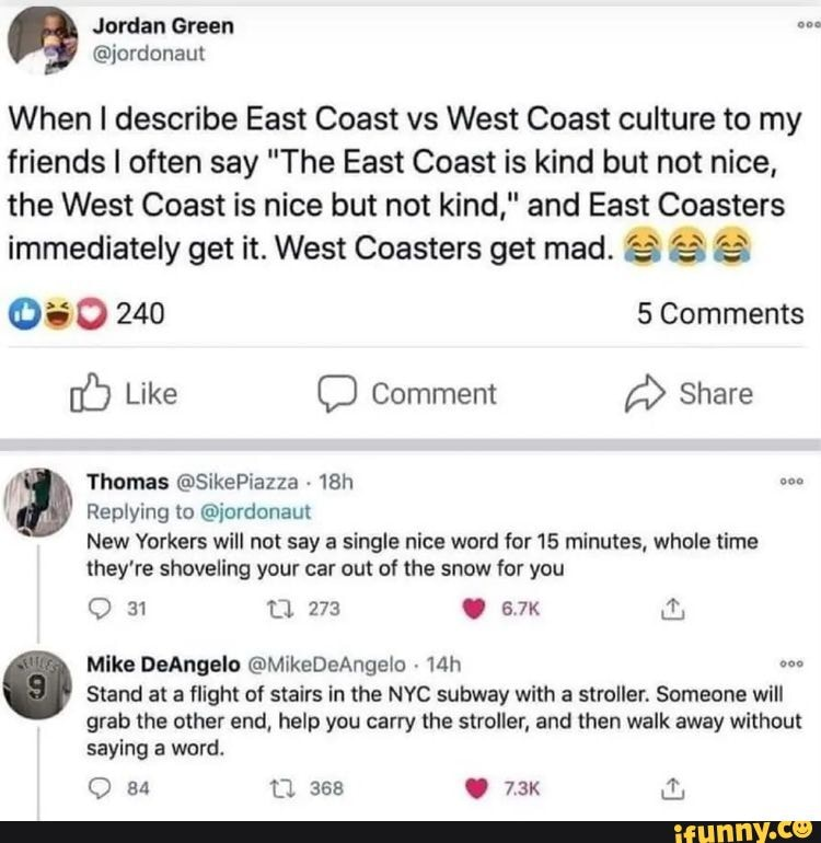Look, I’m not even going to try and pretend that I’m neutral on this one. The east coast is just better.