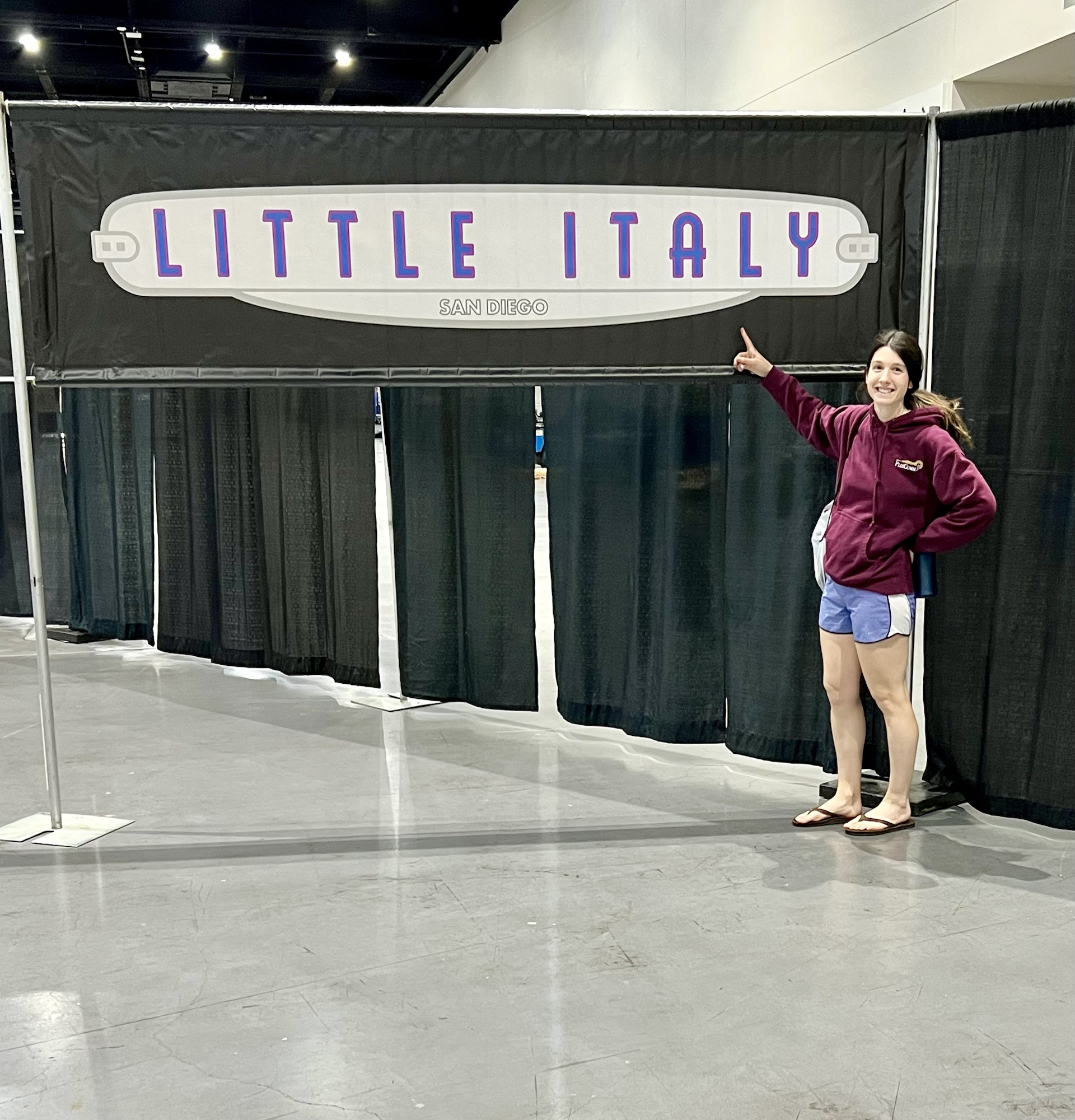 The next morning, we picked up our packets which was very uneventful except that Mara and I got some exciting photos next to the San Diego neighborhoods (but also do you notice the **sweatshirts** we are both wearing because it was such nice, warm weather?!?!)