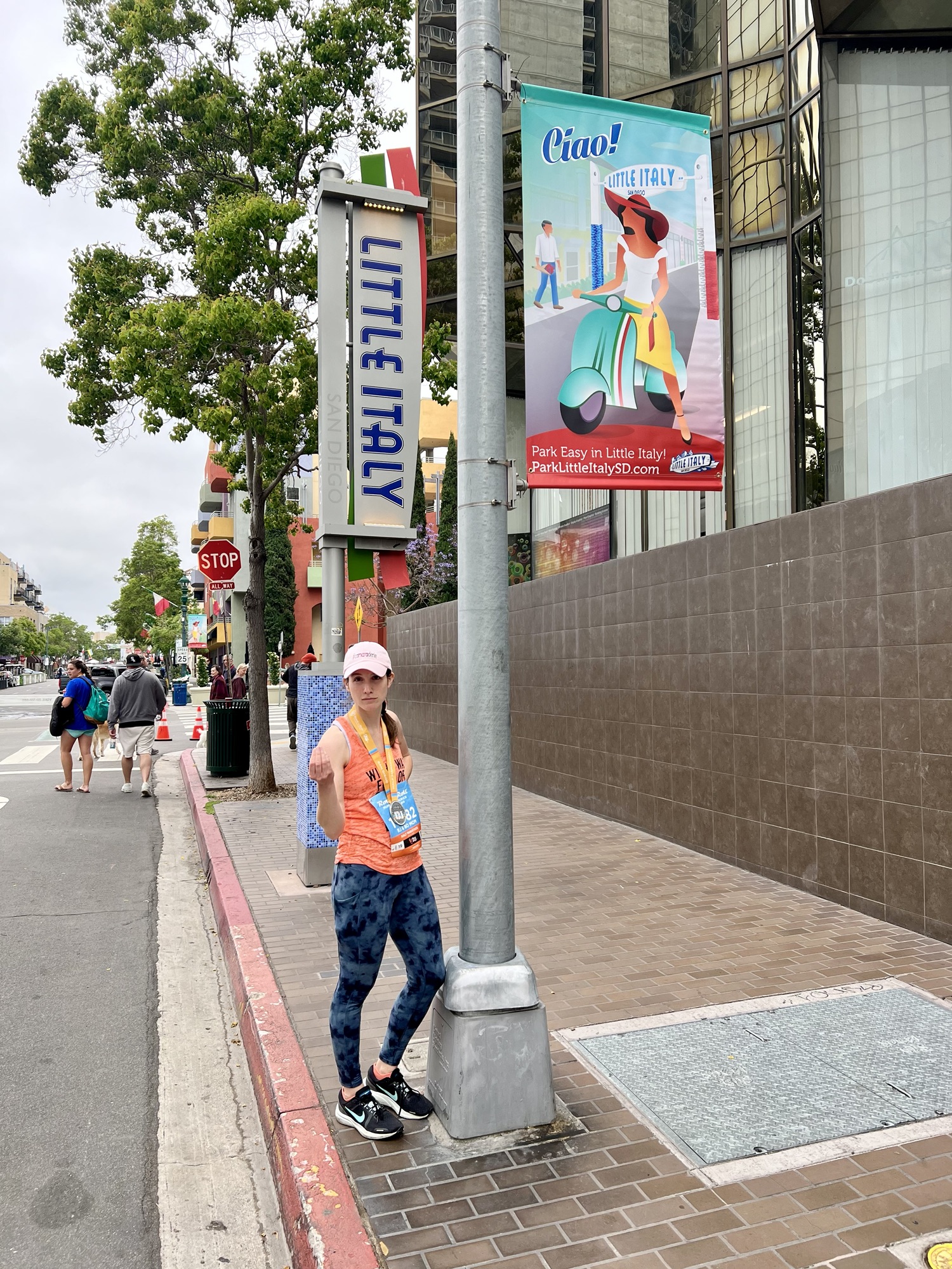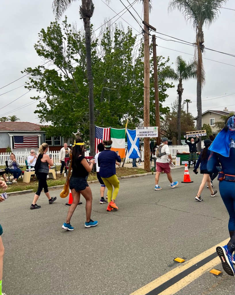 - Community: There were supporters and cheerleaders throughout the entire route. It was so wonderful to see people on every corner with signs, sending encouragement. And to be honest, the San Diego locals were incredibly entertaining. One squad of runners had a “beer” pace group which I found hysterical. There was a bar called “Mile 4.5 Bar” which was conveniently located at mile 4.5 (clever, I know). Another group had a mile 5 sobriety check point with lots and lots of whisky shots. Oh, and we did get flashed by a woman as well which certainly wakes you up 🤣🤣